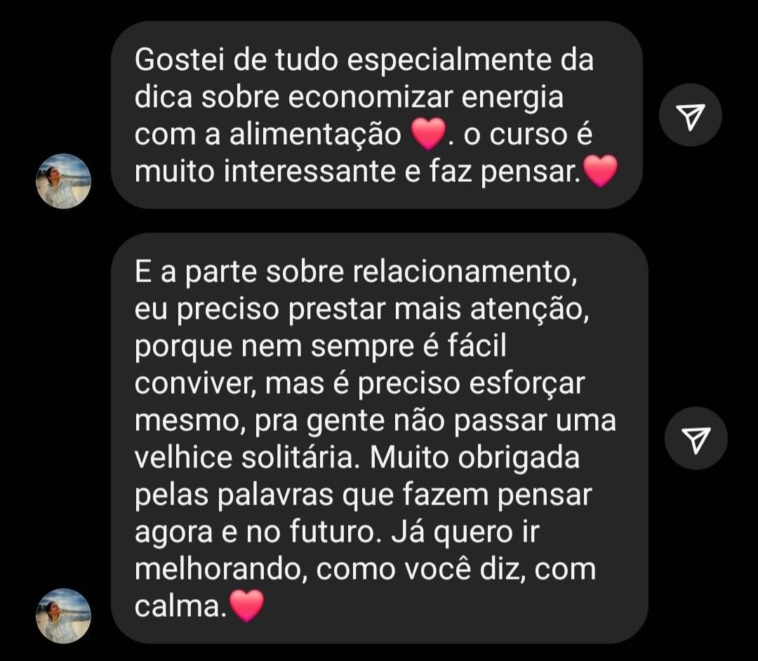 E você também também pode estar em contato com outras mulheres que se interessam por um bom envelhecimento: aprender princípios naturais milenares, interagir, tirar dúvidas, compartilhar experiências, fazer amizades.
